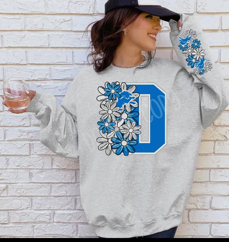 Detroit Lions Adult Sweatshirt Flowers Gray