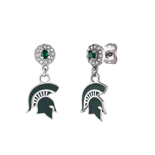 Michigan Block M Gold Plated Crystal Drop Earrings