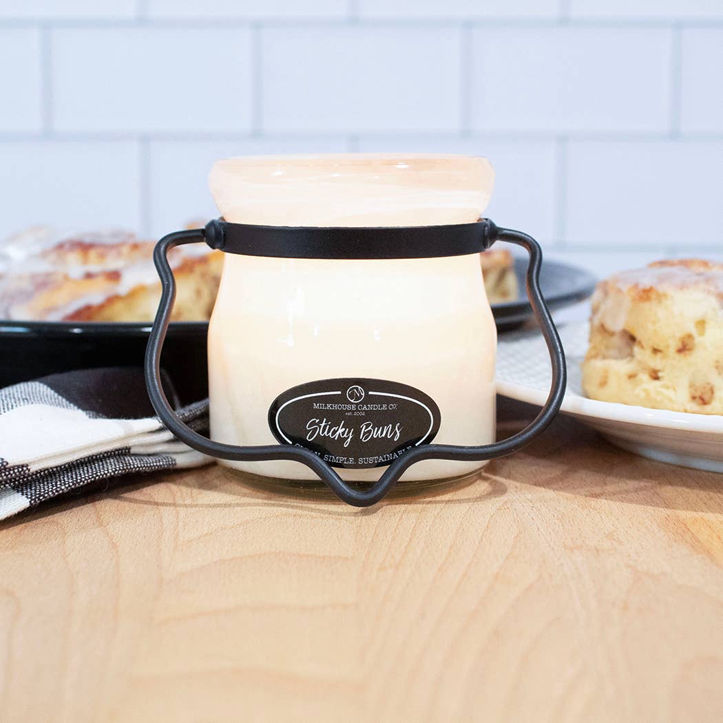 About this product FRAGRANCE DESCRIPTION: Warm cinnamon rolls fresh from the bakery oven. CANDLE INFO: • Size: Volume 5oz • Burn Time: 35+ Hours • Wick: 100% Cotton • Wax: Natural Soy Wax | 100% Paraffin-free • No artificial dyes • Highly scented with Premium Fragrance Oil