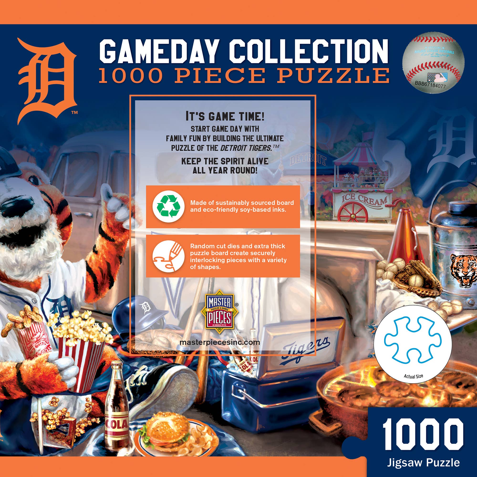 This MasterPieces MLB 1000pc 19.25" x 26.75" Gameday Puzzle is perfect for any Detroit Tigers fanatic. Now fans can play all year long! To reduce its impact on our environment, the chipboard used in this puzzle is made of 100% recycled material.