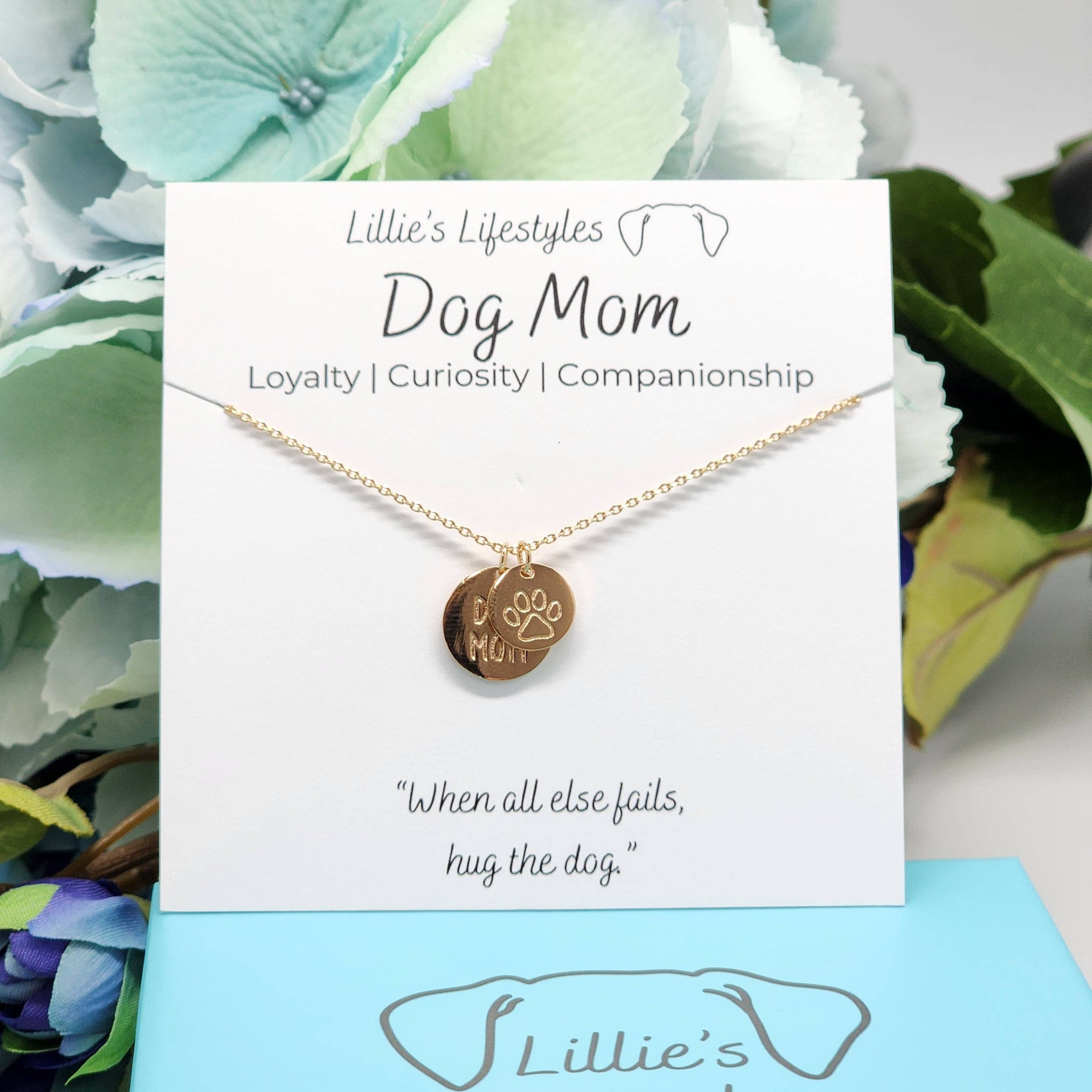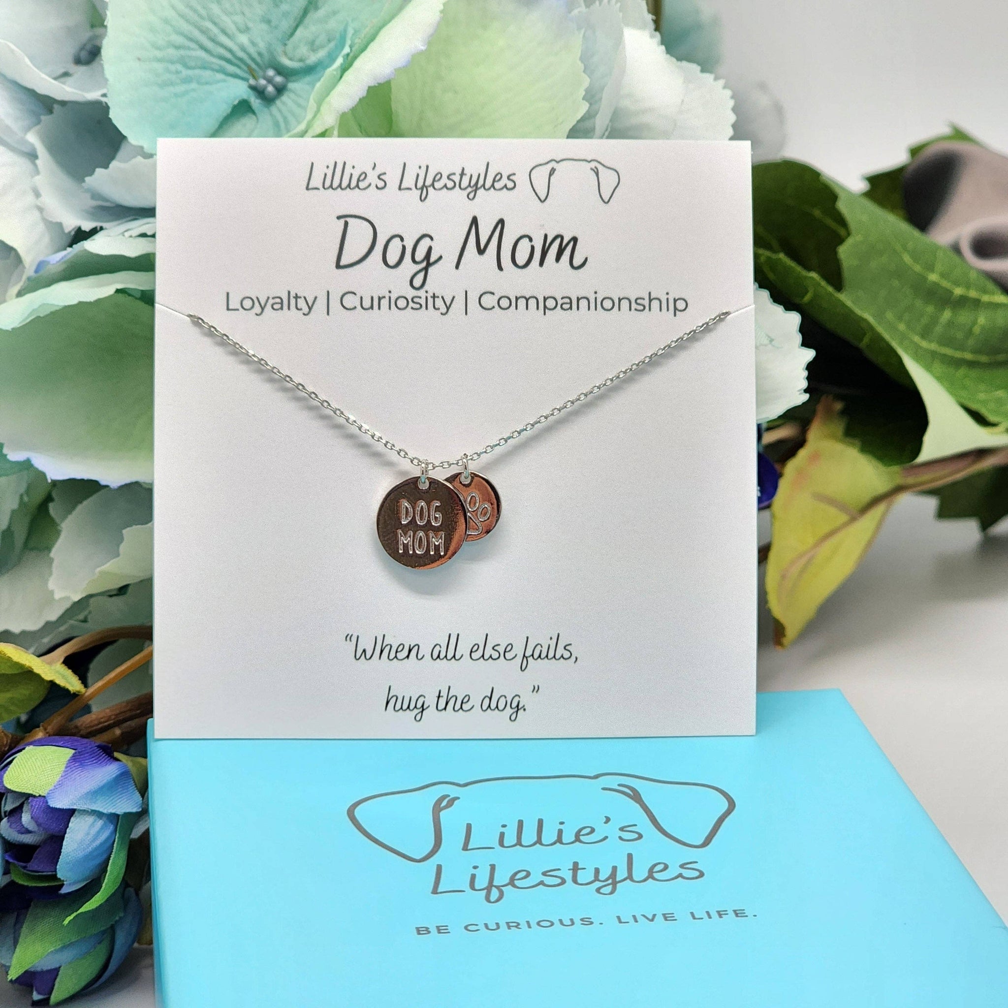 The Dog Mom necklace from Lillie's Lifestyles comes in silver and gold and features two charms that celebrate your favorite pet! The Dog mom pendant represents Loyalty, Curiosity and Companionship. “When all else fails,