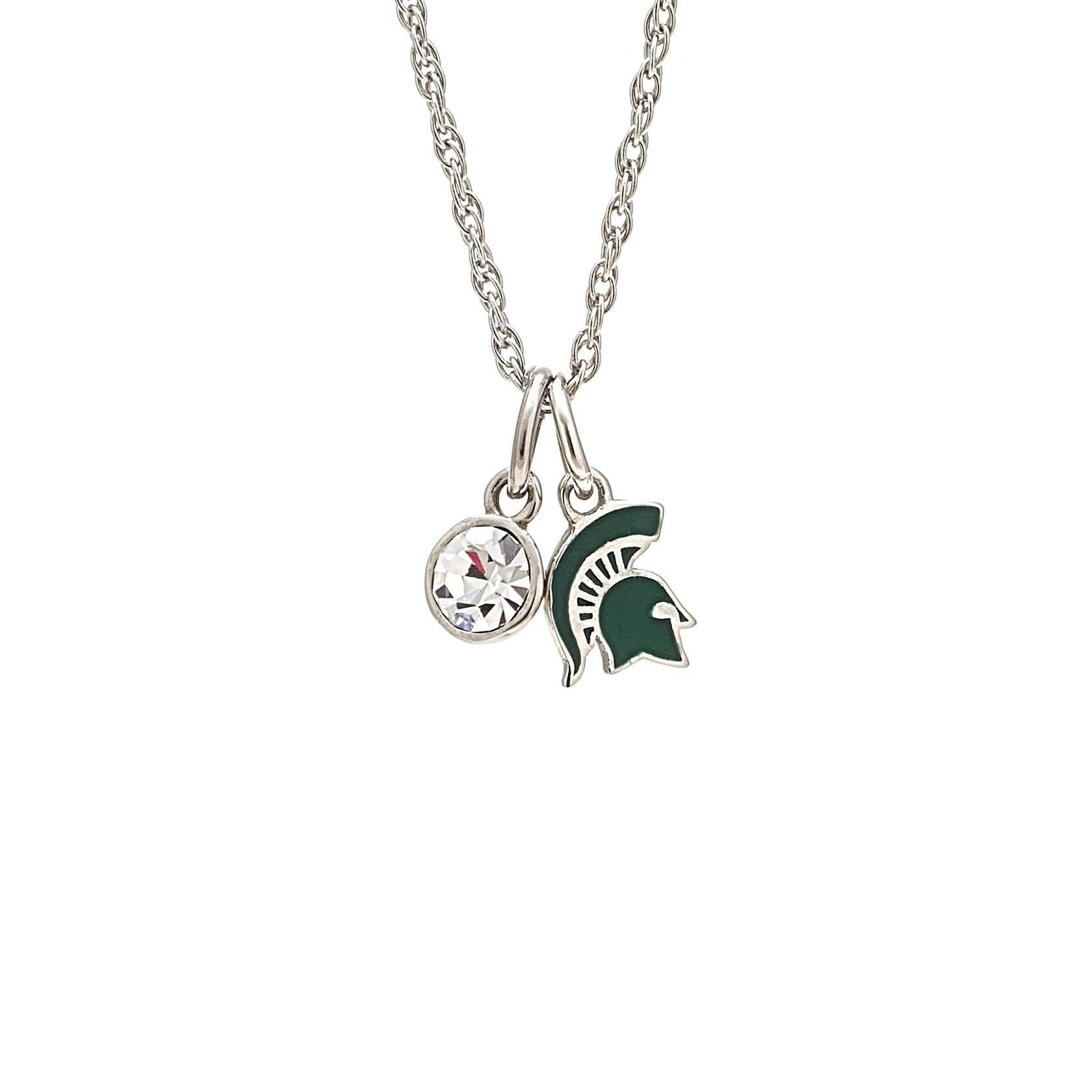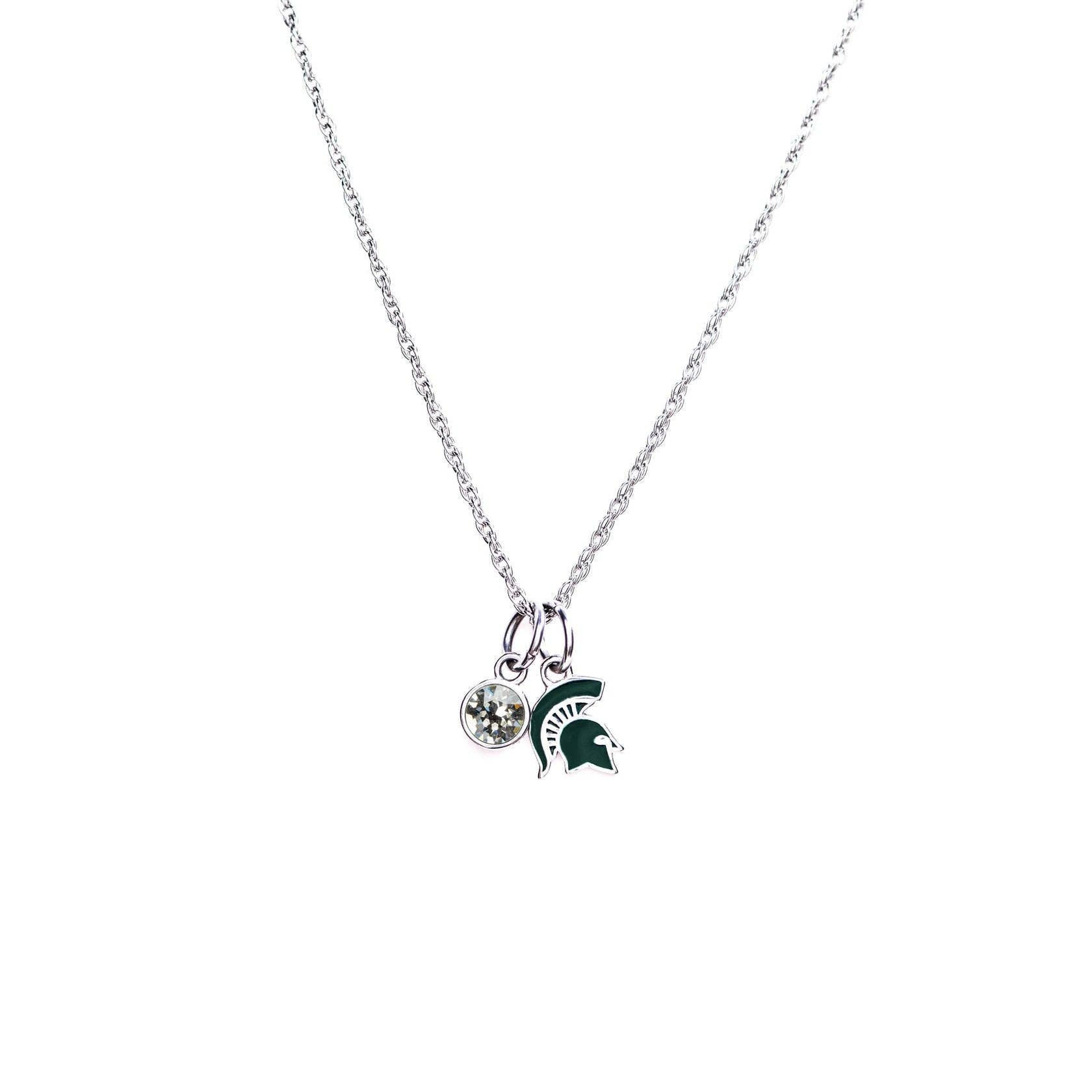 Stone Armory's Michigan State crystal necklace is finally here! Gear up for the game with our beautifully designed Spartan pendant and a sparkling Green crystal, all on an adjustable stainless steel chain. Wear it to the next tailgate or around town to show off your Michigan State Spartan spirit. This MSU necklace would also make the perfect gift for your favorite Michigan State Spartans fan, student, or alumni! Stone Armory's Spartan necklace is made of stainless steel and fits most, making this Michigan State necklace the perfect gift to celebrate graduation, birthdays, Mother's Day, first day of school, the first game, or for everyday fan wear.